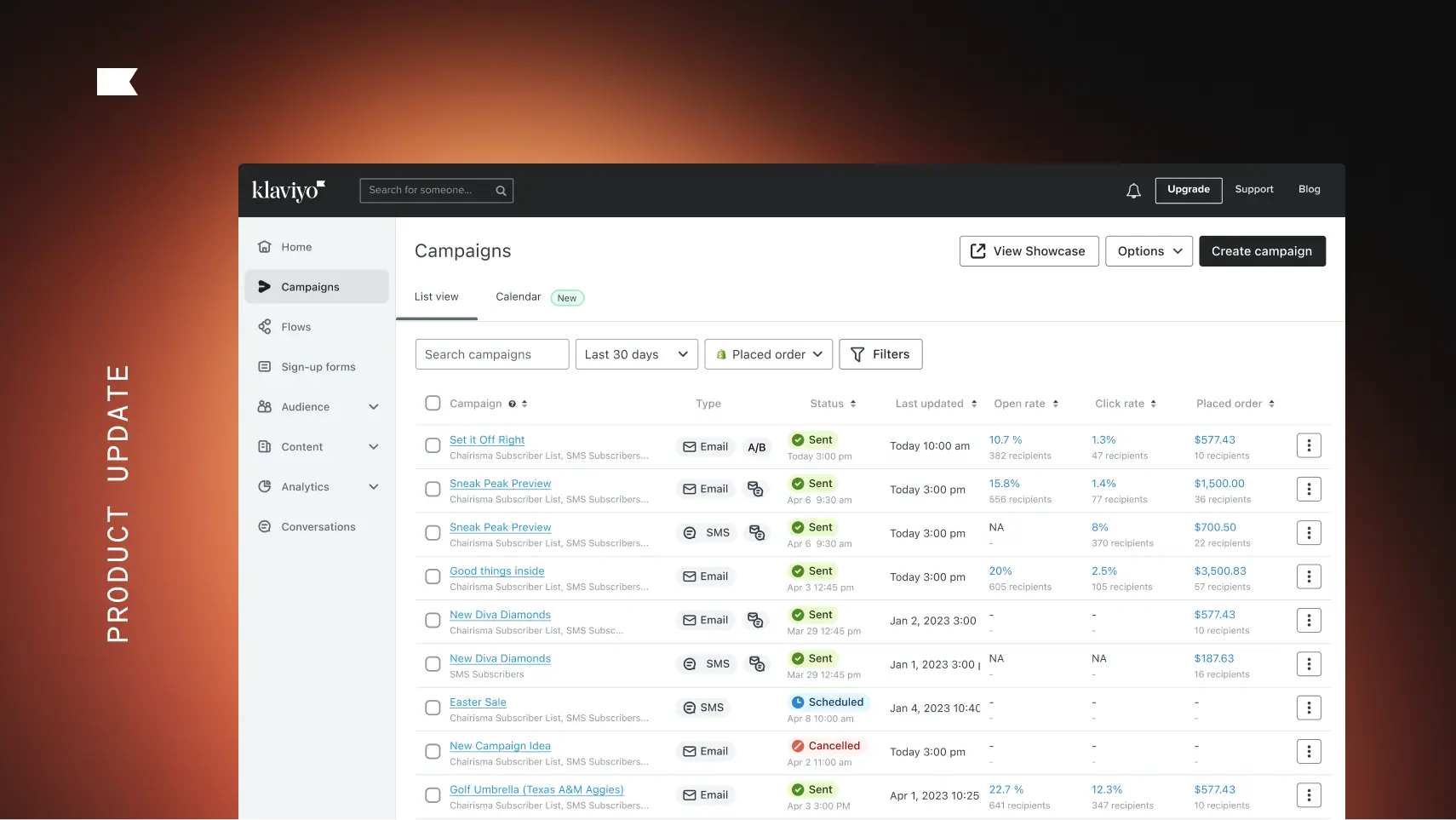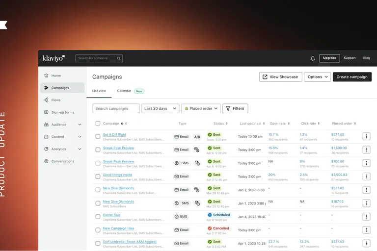 Klaviyo's new Campaigns List View feature makes it easy to view and manage all of your campaigns. Stay organized and streamline your workflow.