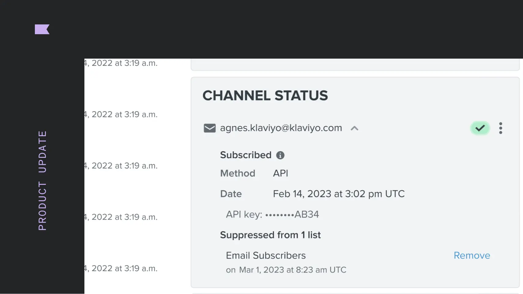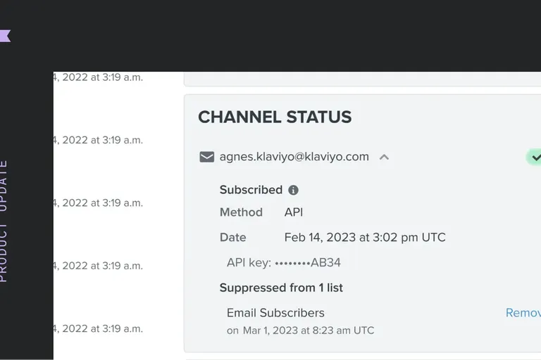 Klaviyo’s API offers querying profiles so marketers can quickly identify the profile’s detailed subscription status.