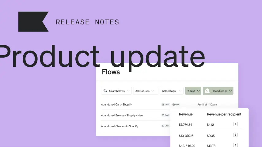 Discover Klaviyo's latest updates - SMS A/B testing, in-editor product feeds, and API expansions for ecommerce marketers. Streamline your marketing efforts and drive sales today.