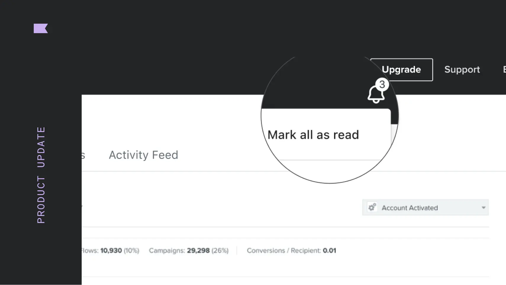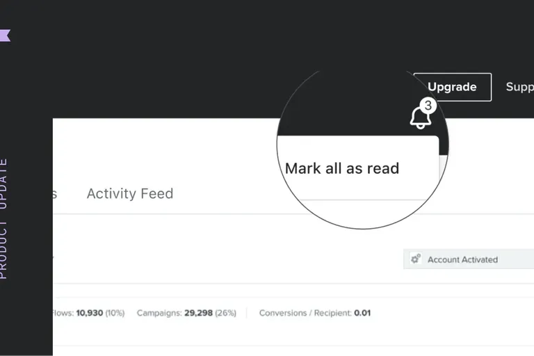 Klaviyo offers an easy to use product dashboard where the most important notifications are available for marketers as soon as they login.