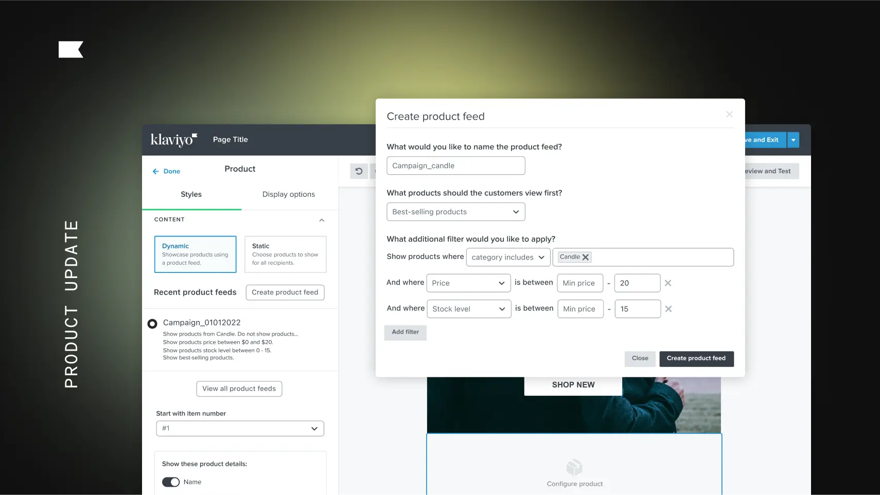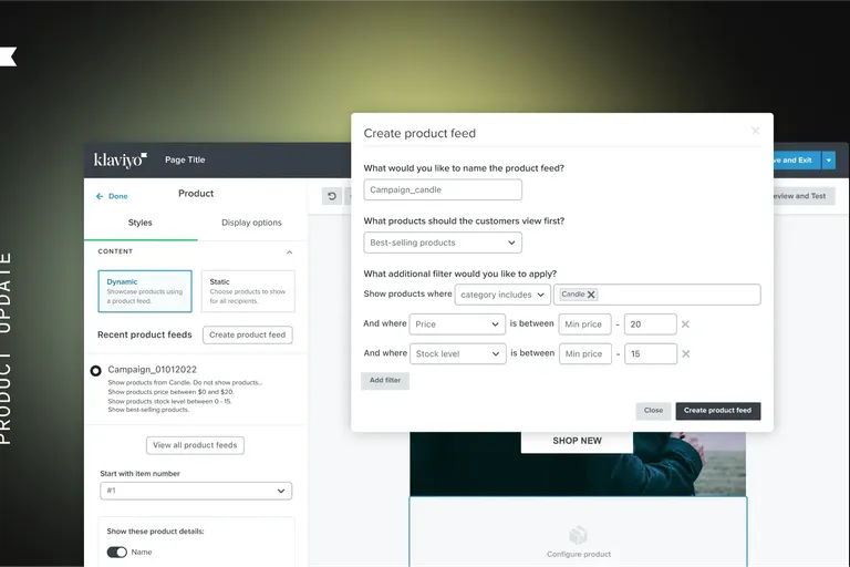 Use the Klaviyo email editor to discover and create dynamic product feeds that help boost conversion rates and improve the personalized customer experience.