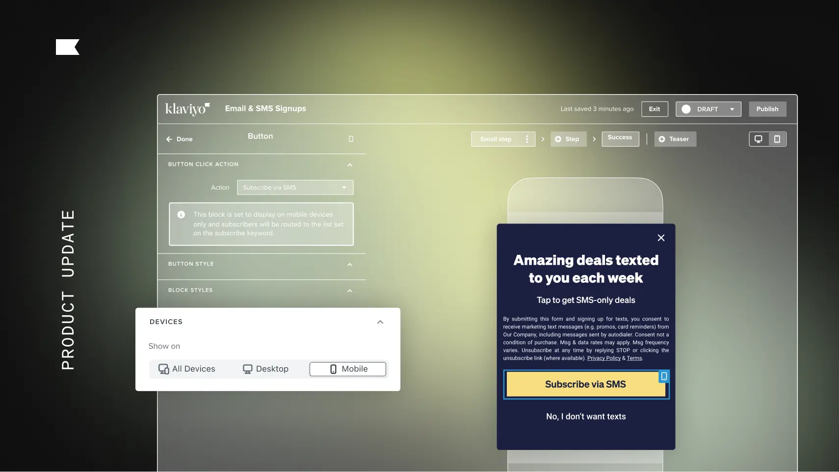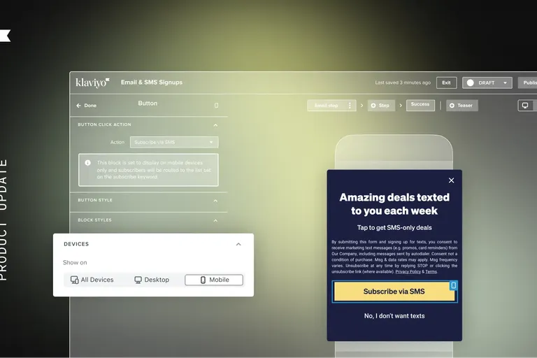 Use dynamic blocks to build one form that shows the best way for mobile and desktop shoppers to sign up for texts.