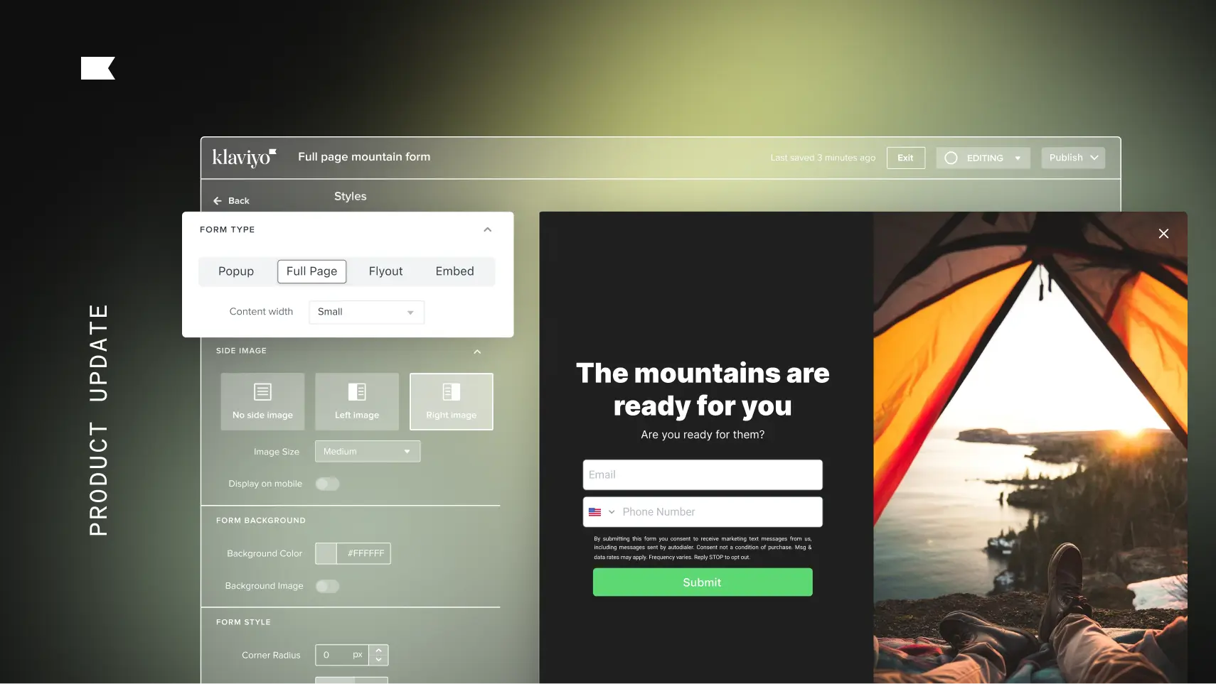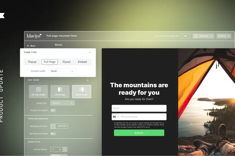 Create full page takeover forms with Klaviyo to ensure that you drive conversions from your most important marketing moments.