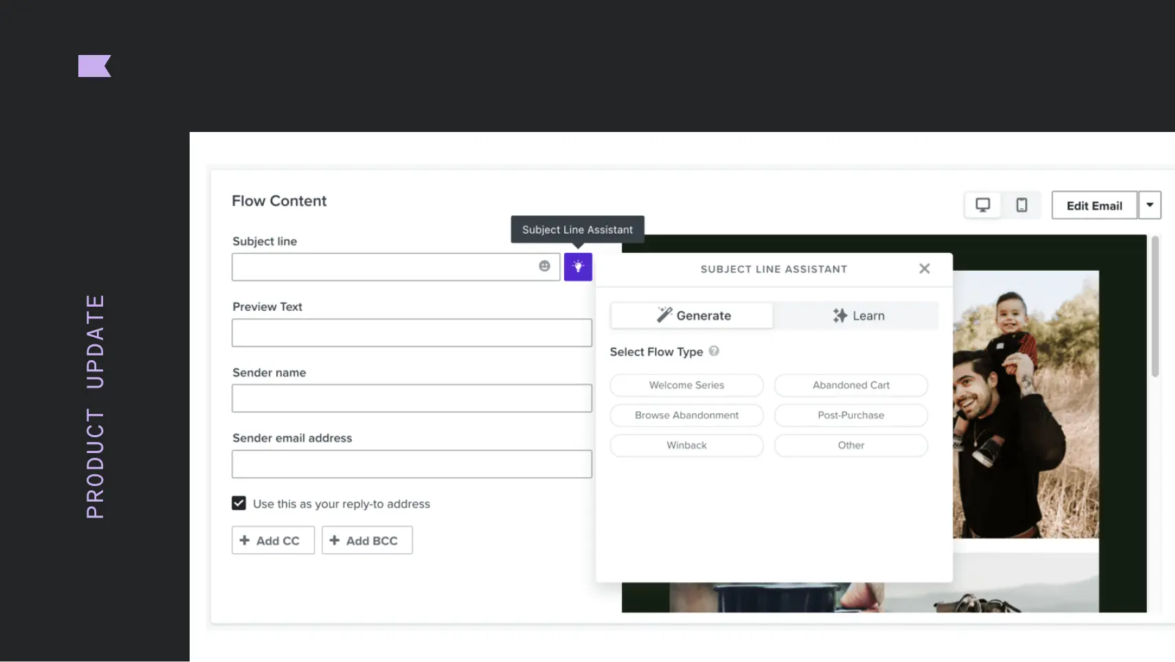 Use Klaviyo’s subject line assistant tool when you create your flow emails to save time and help your emails stand out in the inbox.