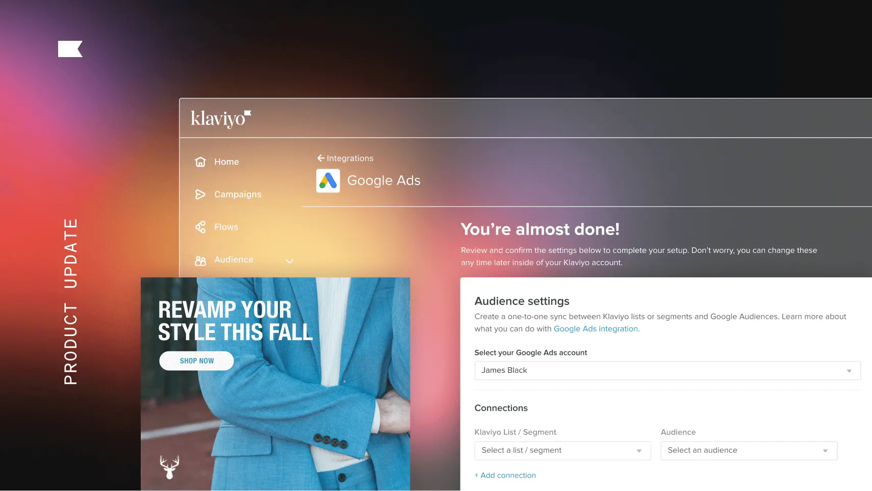 Get more from your ad spend with Google Ads audience targeting. Klaviyo and Google data sync helps create lookalike audiences.