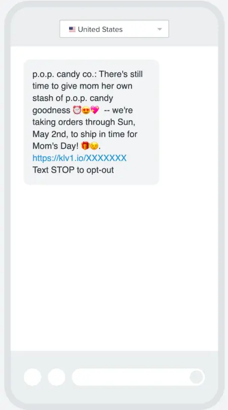 For Mother’s Day, P.O.P. Candy isn’t shy about using SMS to communicate with last-minute shoppers who may be so busy, they need to buy a gift on mobile.