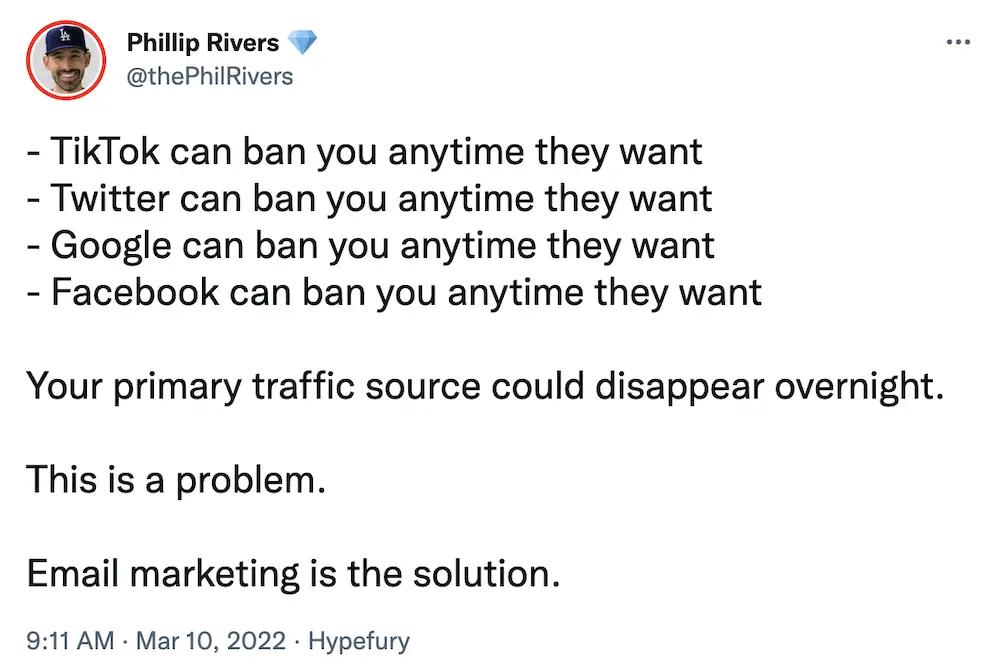 First, the advice here is not to boycott third-party advertising platforms all together, and we’re not suggesting that there isn’t immense value in growing your audience there.