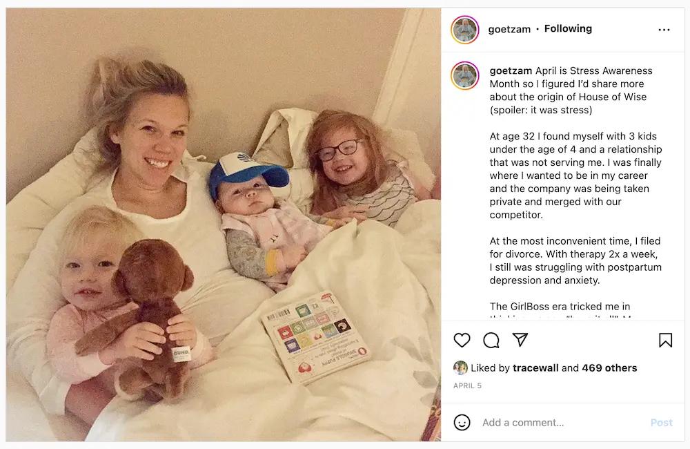 Amanda Goetz is the founder and face of CBD brand House of Wise, and she uses her presence to talk about the problems she faces as a woman, a mother, and a business owner.
