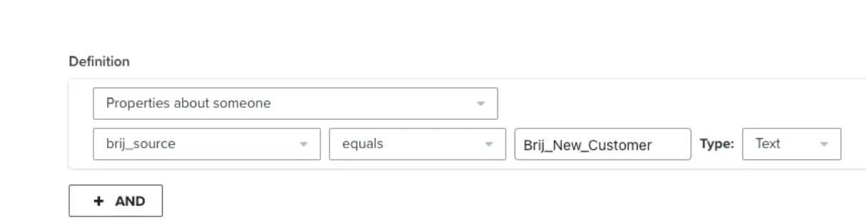 Another way to utilize Brij’s information in Klaviyo is by segmenting profiles based on the information you’d like to target. For example, we can create a segment of profiles who are the most recent customer, that way we can provide all the necessary information to them.This is what the template segment would look like: