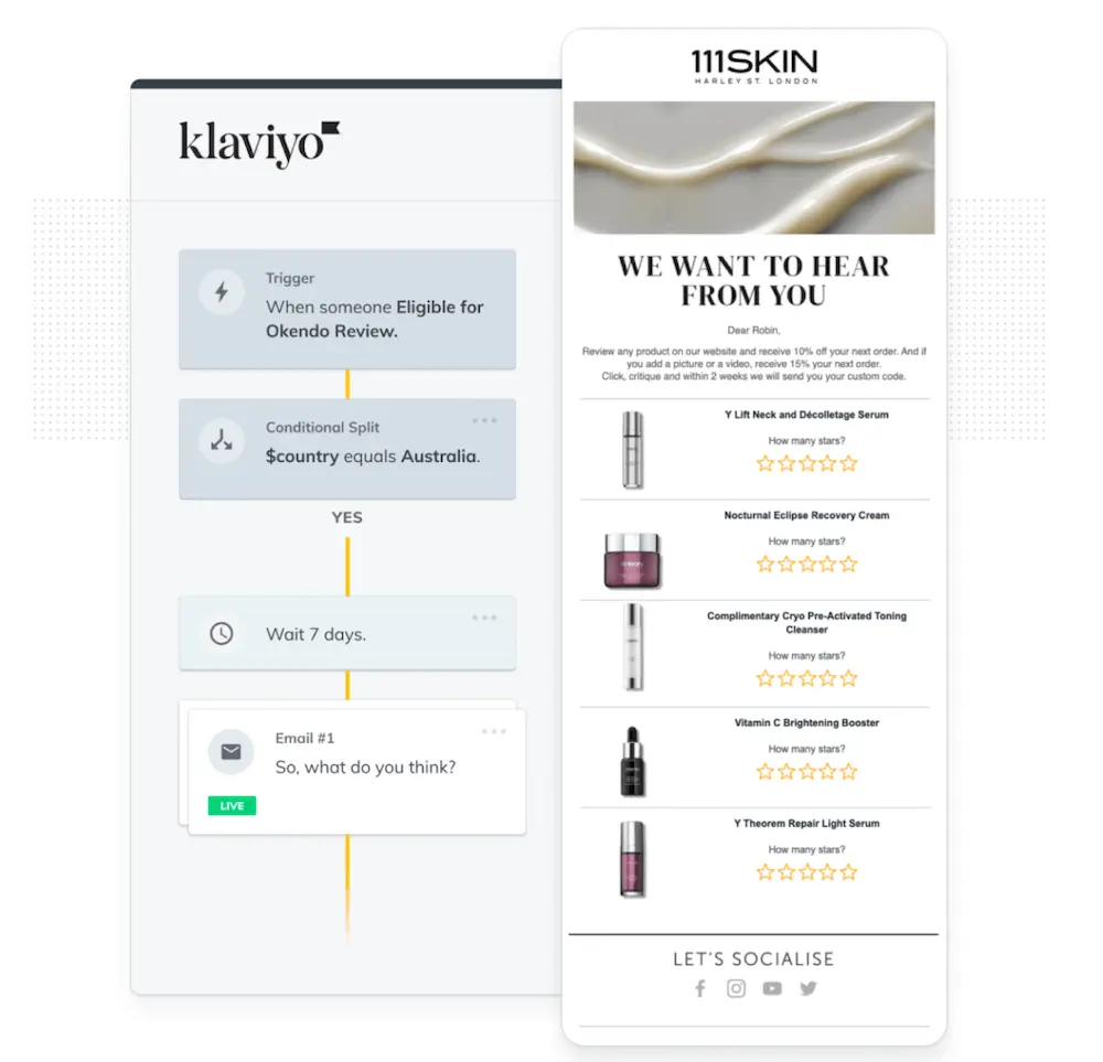 “Because influencers typically publish content from their phones, our Klaviyo SMS integration is extra special, sending influencers a well-timed thank you message to their same mobile device right after they publish,” Bernstein explains. “This is a powerful strategy to build top-of-funnel interest, getting all your influential customers that are most passionate about your brand spreading awareness.”