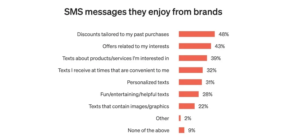 More plainly: Consumers want more personalized SMS marketing campaigns from brands.