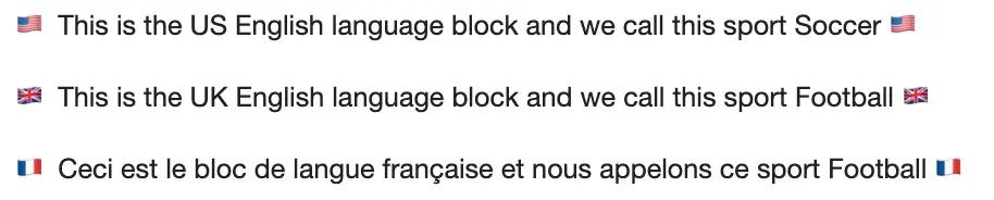 To keep it simple, we’ll use just two languages in our example but the same approach can be easily extended to cover any number of languages. Here’s an example Google Sheet containing sample content and a screenshot of what it looks like.