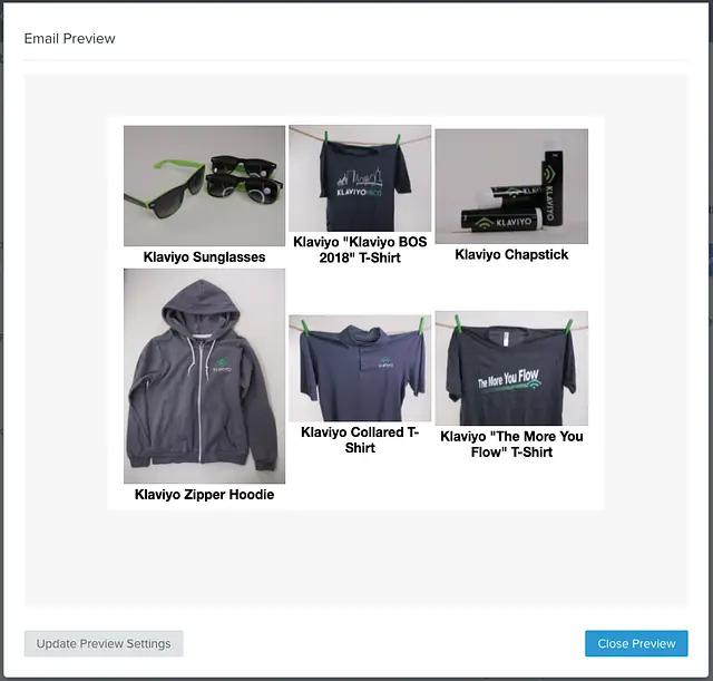 💡 NOTE: The basic example styling above does not necessarily account for all nuances of some inbox services (like Outlook) which do not respect certain style properties (especially on images). It is highly recommended that you standardize the size of all of your catalog images to squares with a width/height of ~200px to avoid any potential issues or at least add additional styling for these cases if you are unable to standardize these images.