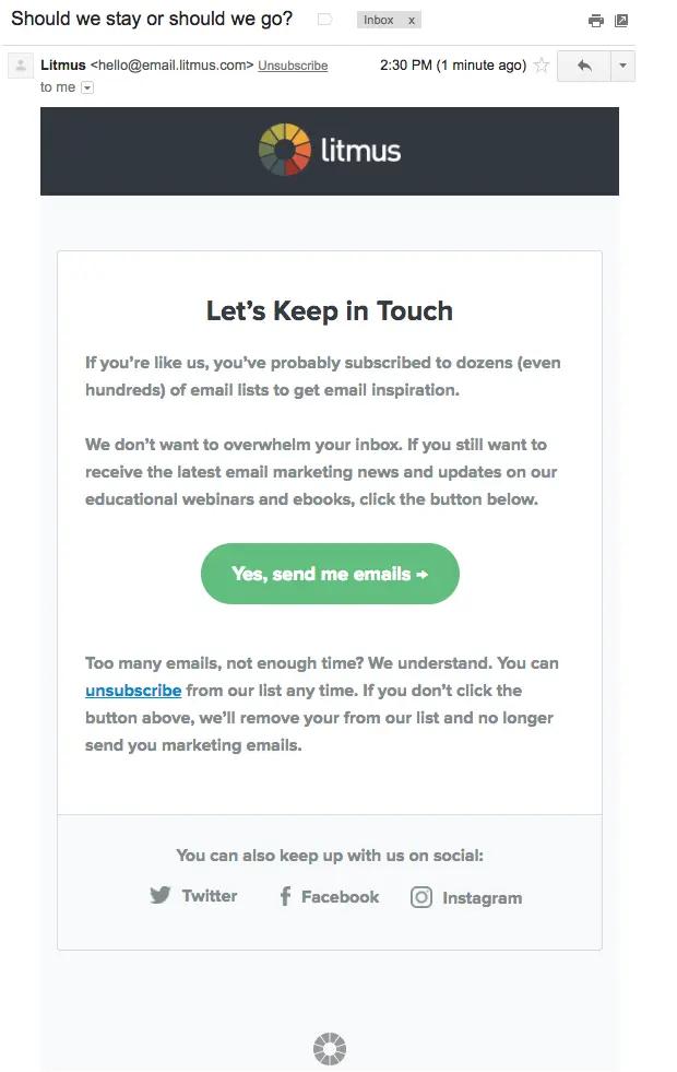 By using actual sales data and designing win-back campaigns based off of that data you’re making sure that the people you’re sunsetting are really the ones that should be removed. You can use an email marketing platform to create these email campaigns and also segment the audience for better personalization.