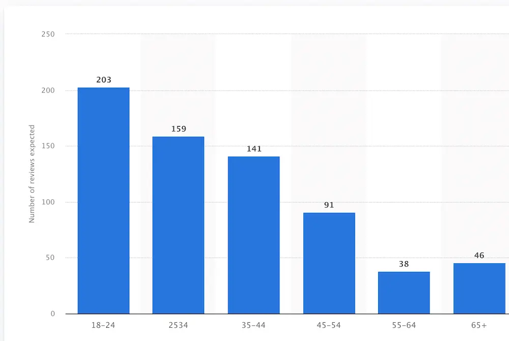 US shoppers expect a significant number of product reviews when shopping online, according to Statista—and the number increases the younger the demographic: