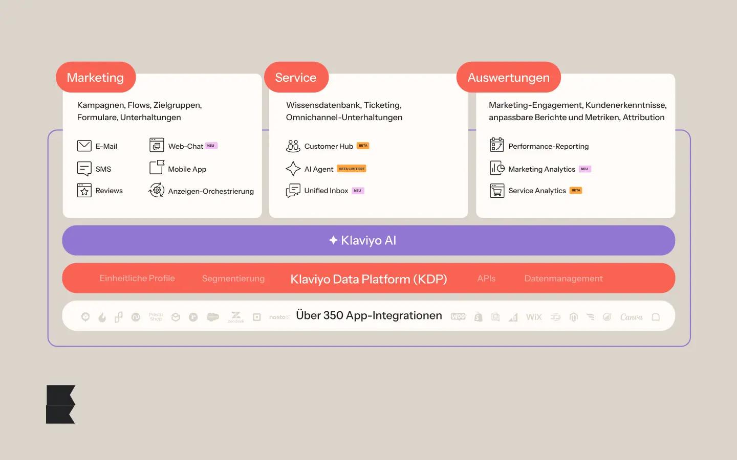 Klaviyo B2C CRM bringt Marketing, Service und Auswertungen auf einer einzigen Plattform zusammen. Die Klaviyo Data Platform und Klaviyo AI (K:AI) beschleunigen und vereinfachen den Aufbau personalisierter, langfristiger Kundenbeziehungen.