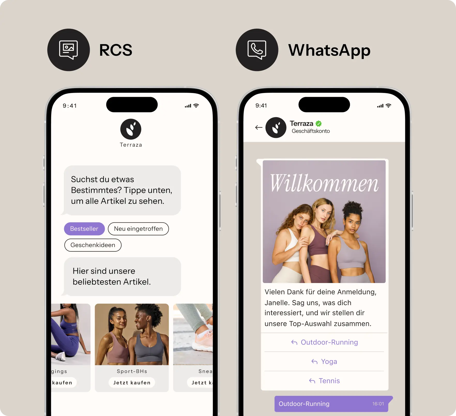 NeuGESCHLOSSENE BETA-VERSIONRCS: Textnachrichten können nun mit verifiziertem Absender-Branding, hochauflösenden Bildern und Schaltflächen für schnelle Antworten gesendet werden.