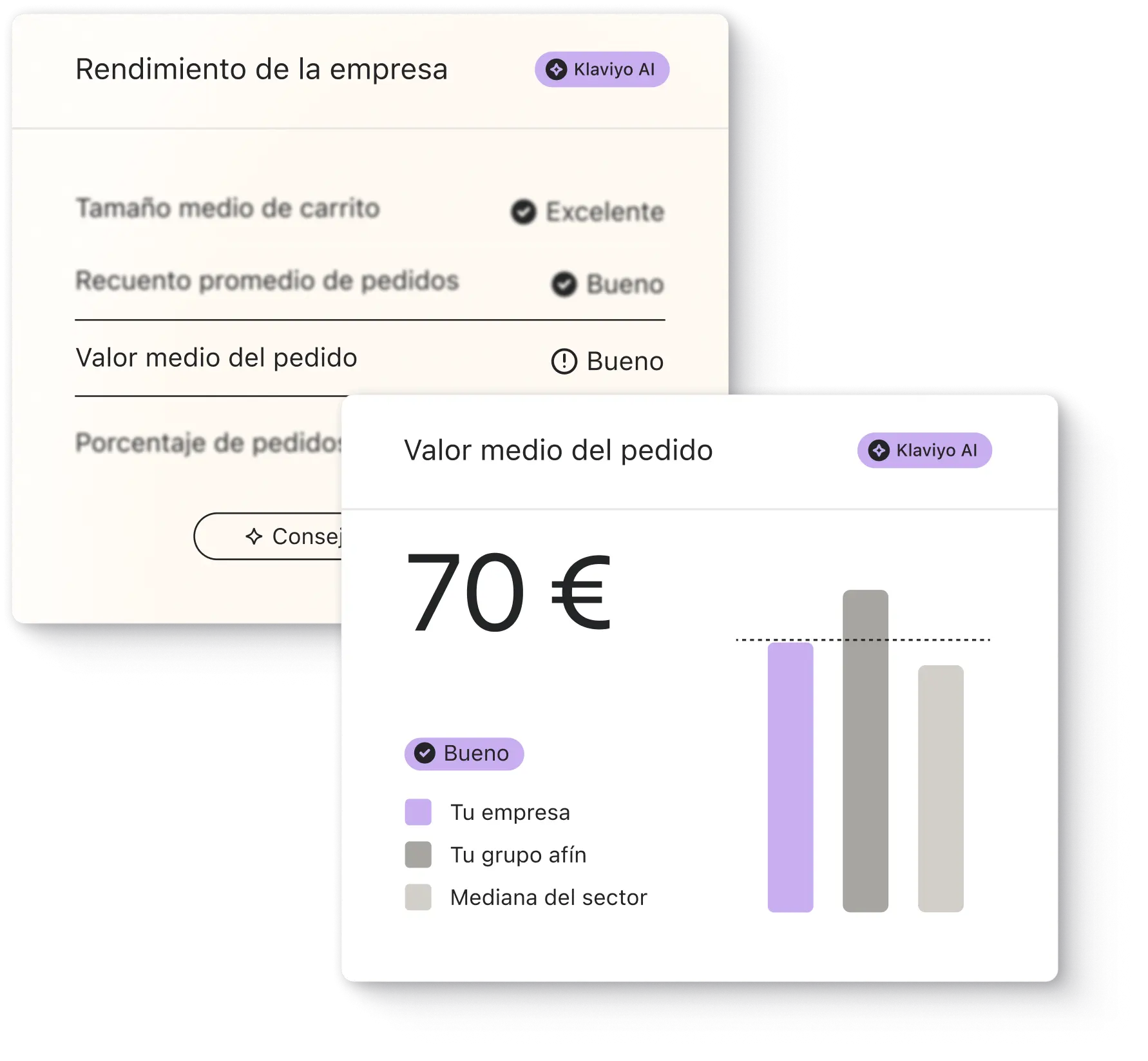 Las métricas de referencia de Klaviyo se adaptan automáticamente en función del sector y la situación de tu empresa.