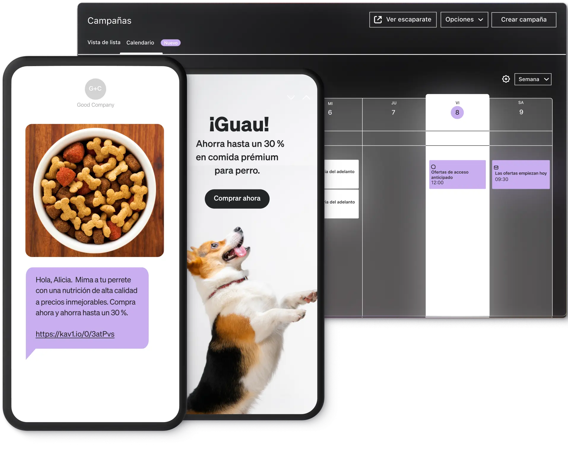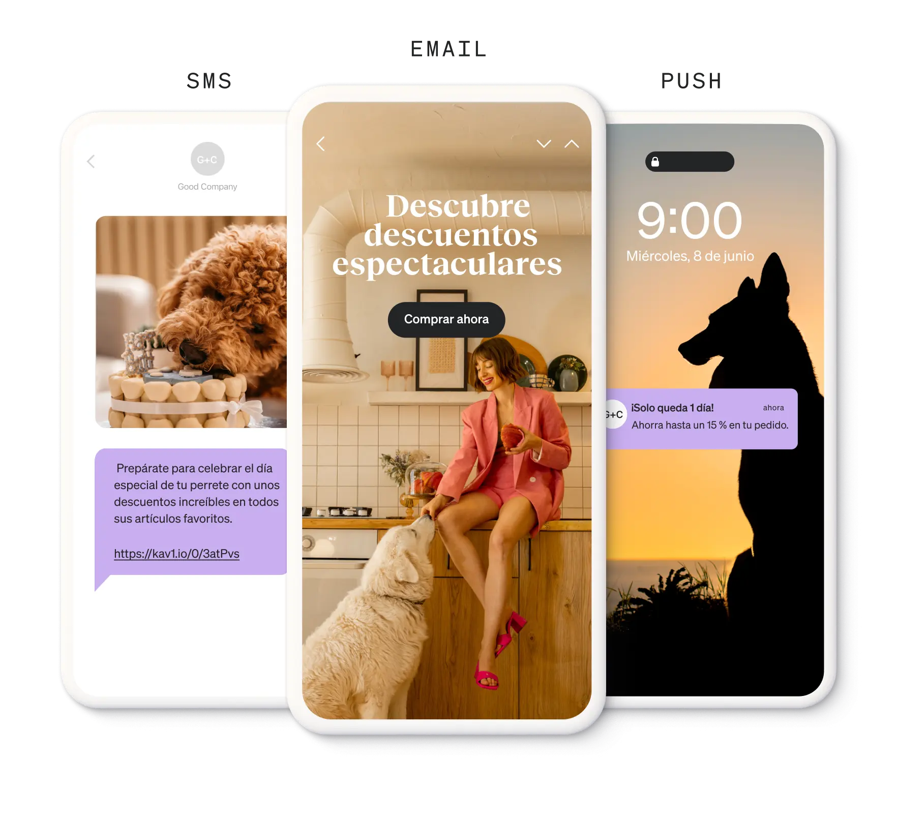 Gestión simplificada de campañas por correo electrónico, SMS y notificaciones push