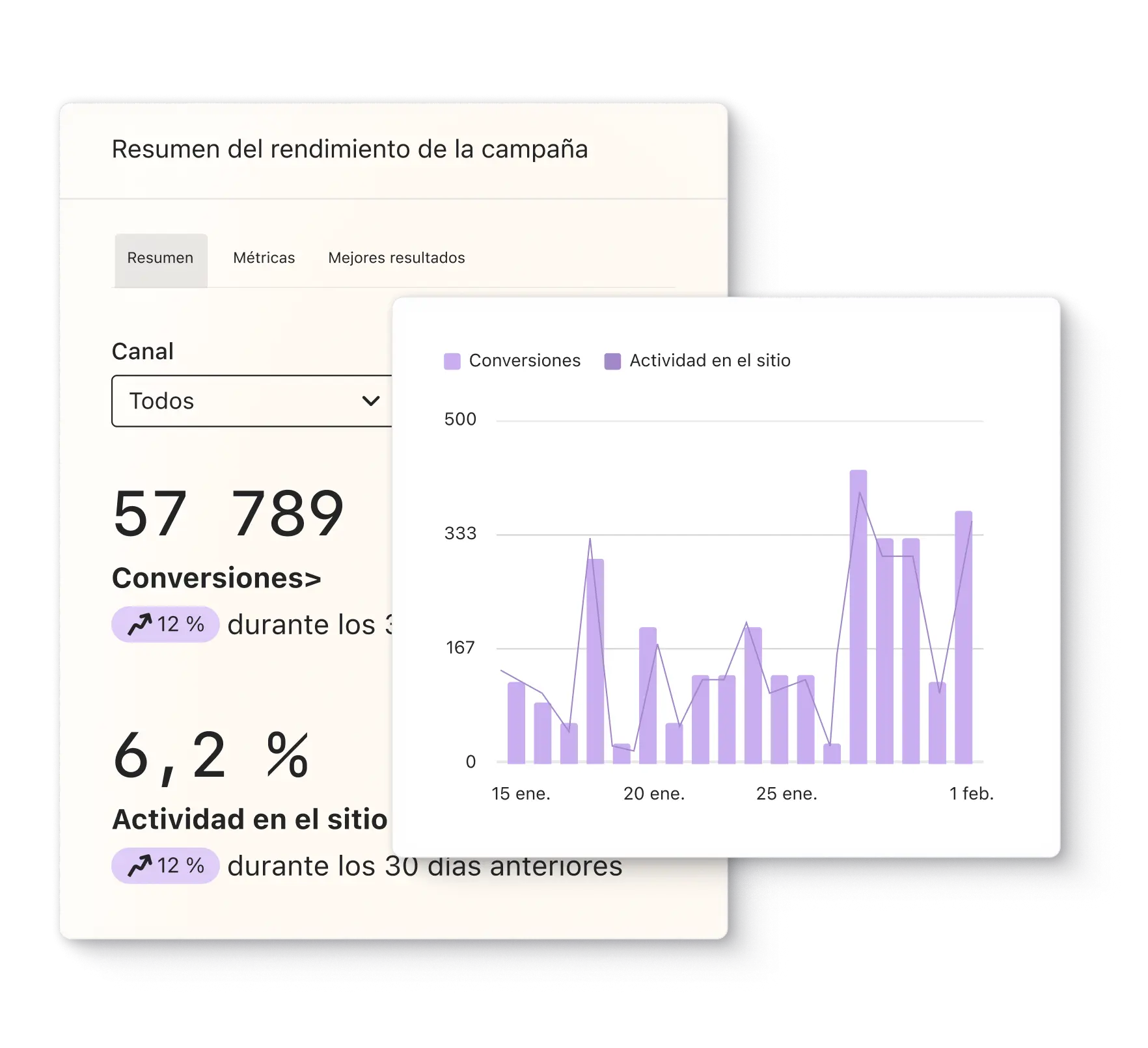 Aumenta las conversiones y mejora la capacidad de entrega con pruebas e insights basados en IA que te mostrarán el rendimiento de las campañas en todos los canales.