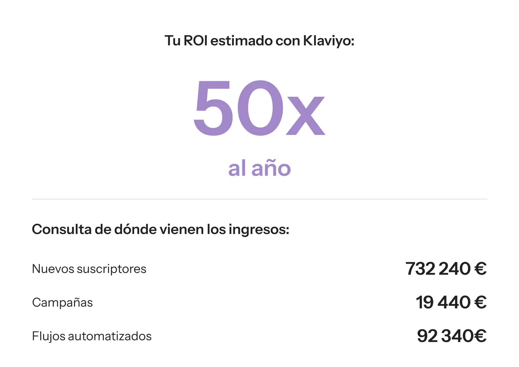 Ya incluido en Klaviyo | Disponible con Marketing Analytics | |
