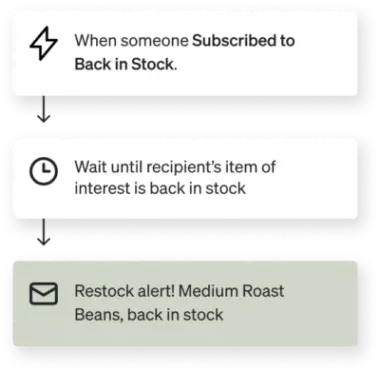 El flujo de reposición de stock de Klaviyo tiene 2 componentes clave: