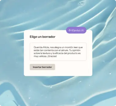 - Ayuda a los clientes a dejar reseñas más rápido con las recomendaciones de titulares, que se generan con inteligencia artificial. Las respuestas rápidas generadas con inteligencia artificial agilizan las respuestas y se ajustan al estilo de la marca.