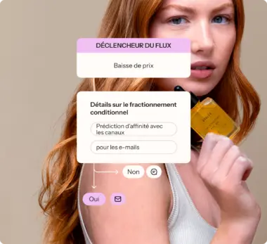 - Créez des flux automatisés multicanaux, qui déclenchent automatiquement l’envoi d’un e-mail ou d’un SMS en fonction des données et du comportement en temps réel de vos clients. Et avec Flows AI, la création des flux est encore plus rapide.