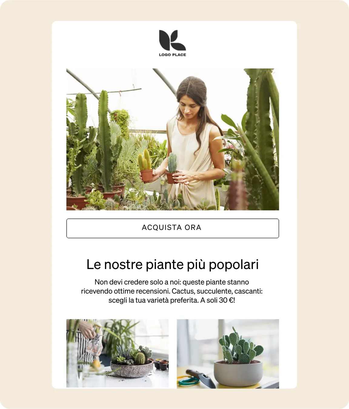 Abbandona l’approccio universale (e impersonale) per le tue campagne. Con l’intelligenza artificiale puoi creare facilmente la campagna più d’impatto per ciascuno destinatario e inviarla all’istante, rendendo i tuoi messaggi più coinvolgenti che mai.