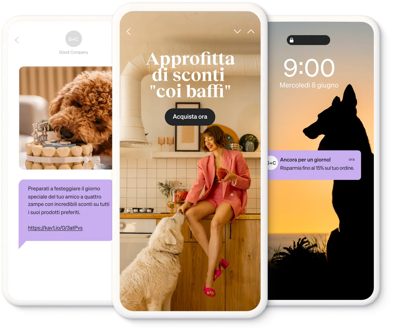 Tieni alto l’interesse nei confronti del tuo brand grazie a consigli personalizzati sui prodotti, codici sconto univoci e punti fedeltà, mettendoli in evidenza attraverso e-mail, SMS e notifiche push.