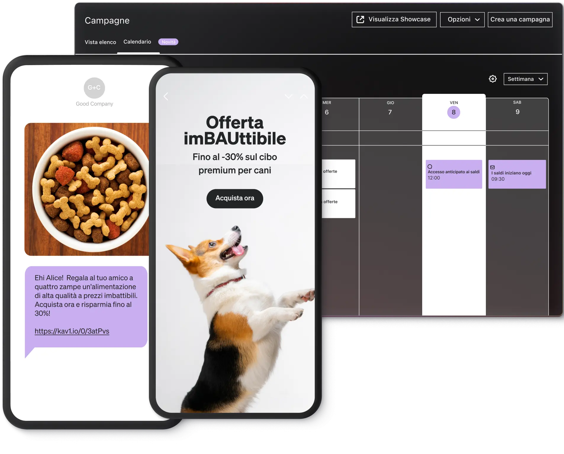 Semplifica la gestione delle campagne con un calendario unificato, una pianificazione intelligente e funzionalità conformi per i controlli automatici del consenso.