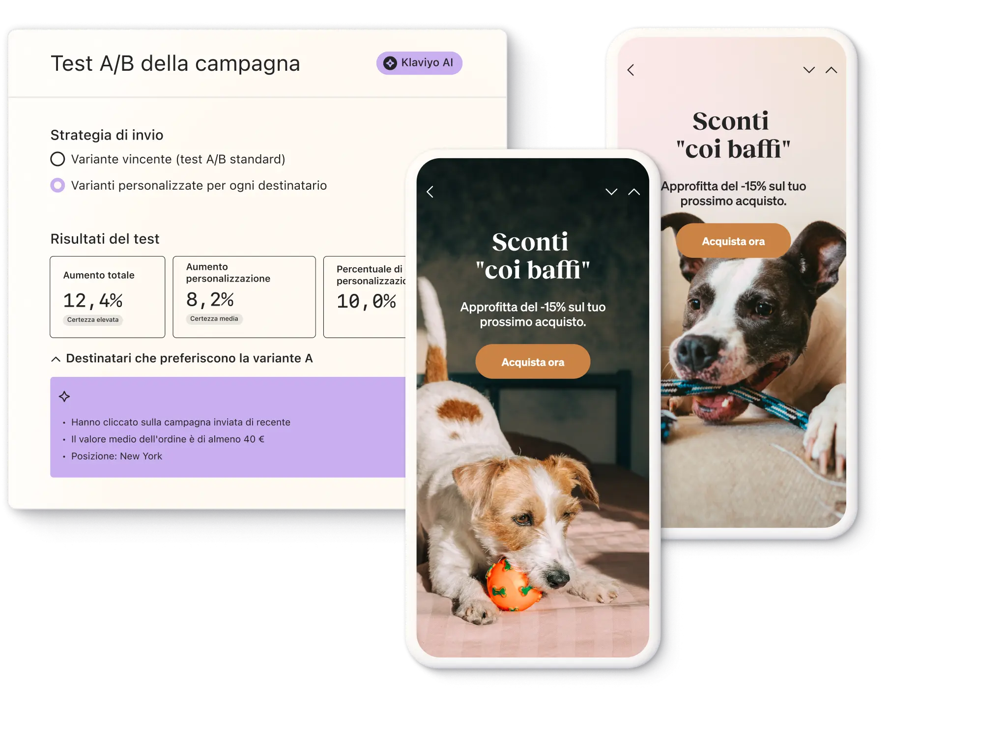 Offri contenuti personalizzati e sconti efficaci su tutti i canali grazie a una campagna basata sull’intelligenza artificiale e alla segmentazione in tempo reale.