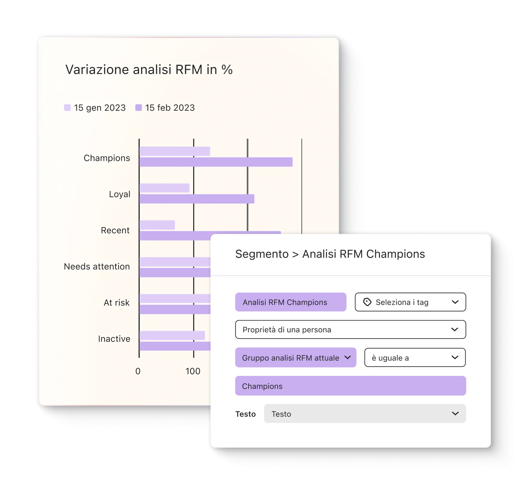 Ricevi consigli personalizzati sul marketing e sul targeting grazie a strumenti come la deliverability e i centri d’azione dell’analisi RFM.