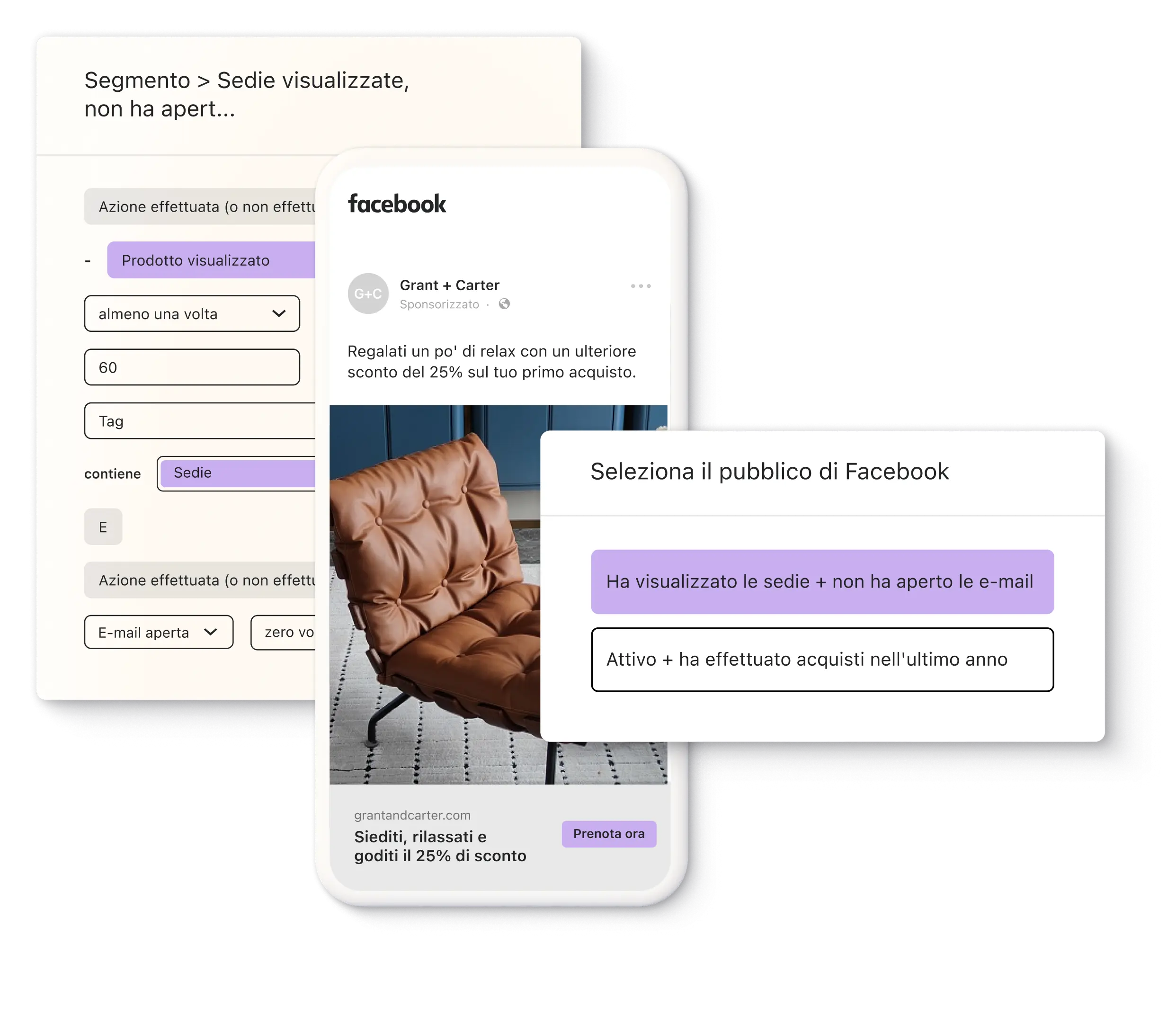 Risparmia tempo con integrazioni semplici e la sincronizzazione in tempo reale su piattaforme come Facebook e Google, in modo che il targeting sia sempre aggiornato e puntuale.
