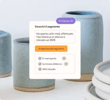 - Sfrutta Klaviyo AI per creare istantaneamente segmenti e flussi complessi ed realizzare comunicazioni personalizzate in pochi secondi.