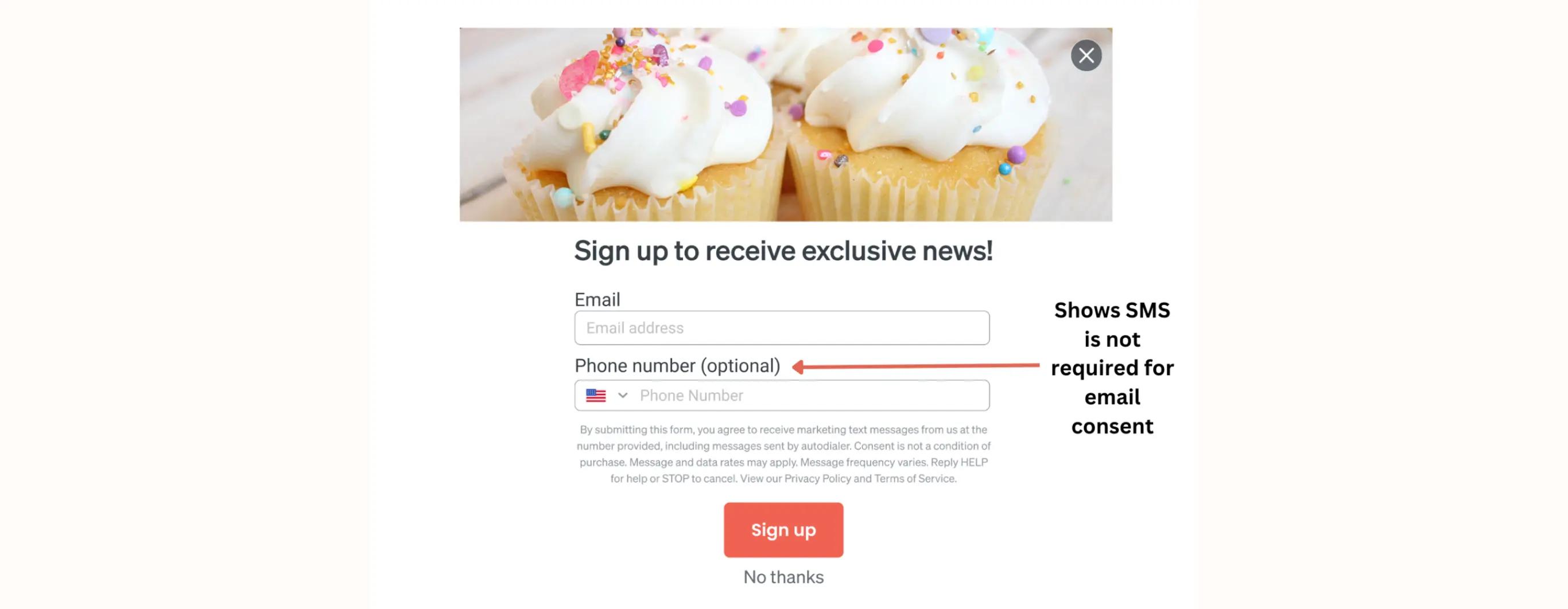 But if you want to use a single form or page for multiple channels, you need to make it clear that consenting to SMS isn’t required.
