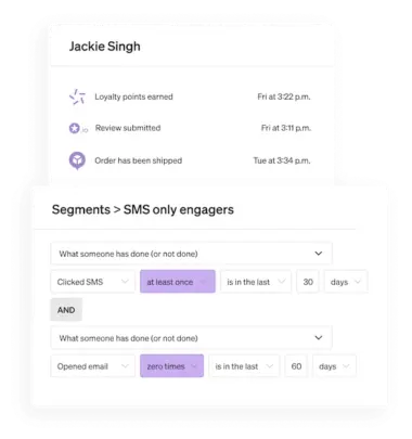 Our built-in database updates with your customer information in real-time, so you always know what your customers are doing on your site, and how and when to best message them.