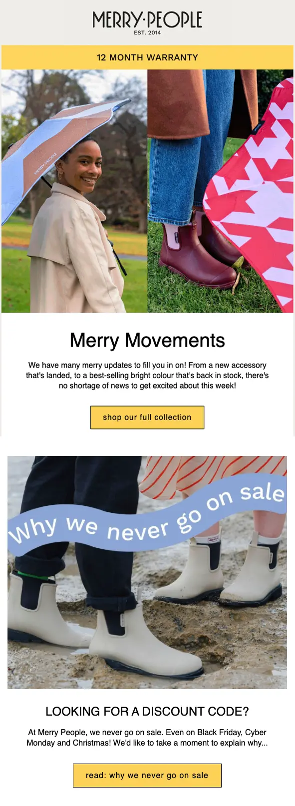 Not all brands want to discount their products—but Merry People shows that you can send engaging emails during Black Friday without a specific sale offer.