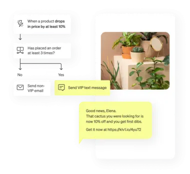 Klaviyo automatically syncs your product catalog for easy point-and-click use in marketing.