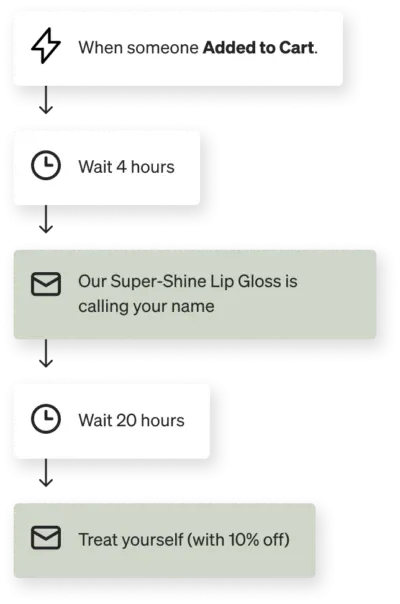 Flows (automated email series) are the most efficient way to manage lifecycle communications because they enable you to respond programmatically to customer actions (or lack thereof).