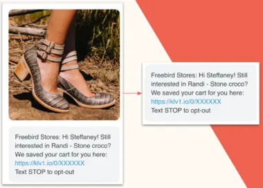 An abandoned cart text, on the other hand, should be much more straightforward, Mazola and Buban agree: the name of the first product the shopper left in their cart, a coupon code if you’re offering one, a single link to return and purchase, and possibly a corresponding product image.