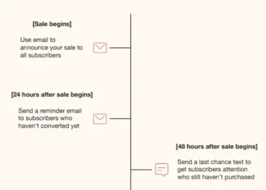 Buban sees this strategy most frequently during bigger sales, like BFCM, with additional texts scattered throughout the campaign.
