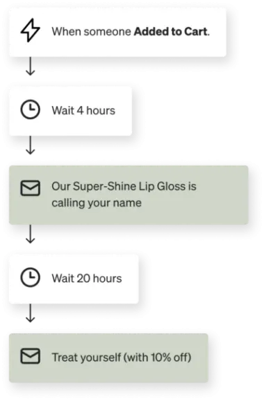 Cross-sell flows are a great way to automatically recommend products that someone might like based on what they’ve already purchased. The key here is to give your customer time to use the product they just purchased before recommending more products.