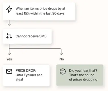Similar to the back-in-stock flow, this touchpoint has some urgency behind it because price drops are a powerful lever for conversions. Drive more revenue by adding an SMS message to this flow.